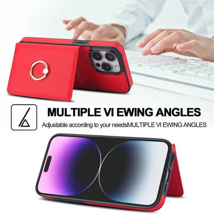 Funda para Teléfono iPhone 14 Pro Max RFID con Soporte para Anillo y Tarjeta (Rojo)