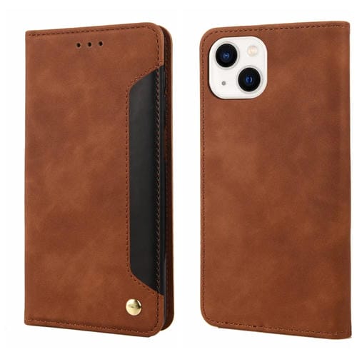 Pour iPhone 14 Skin Feel Splicing Étui de téléphone en cuir (marron)