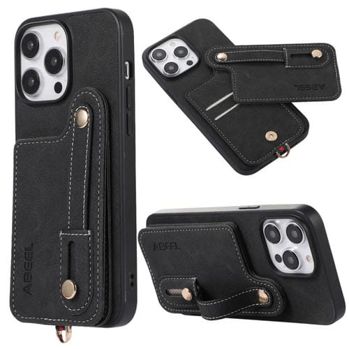 Funda para iPhone 15 Abeel Litchi Texture Card Bag PU Phone Case (Negro)