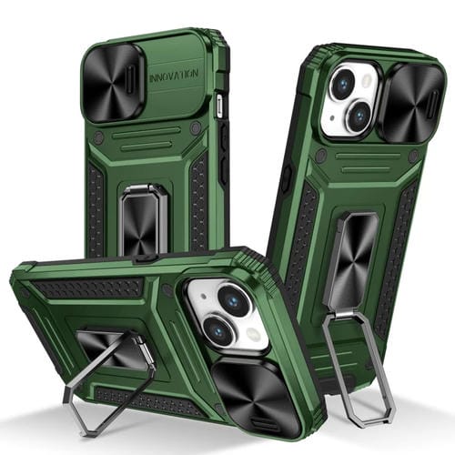 Funda para iPhone 15 Camshield Robot TPU Hybrid PC Protección (Verde)