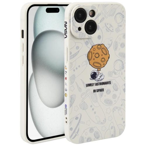 Pour iPhone 15 Étui de téléphone à bord droit en silicone à motif d'astronaute (Bel astronaute-Blanc)