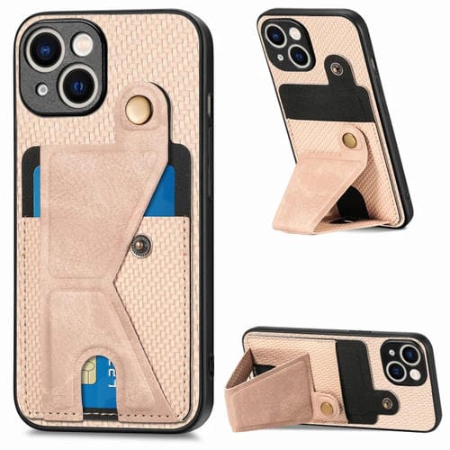 Pour iPhone 15 Portefeuille en fibre de carbone Flip Card K Shape Holder Phone Case (Kaki)