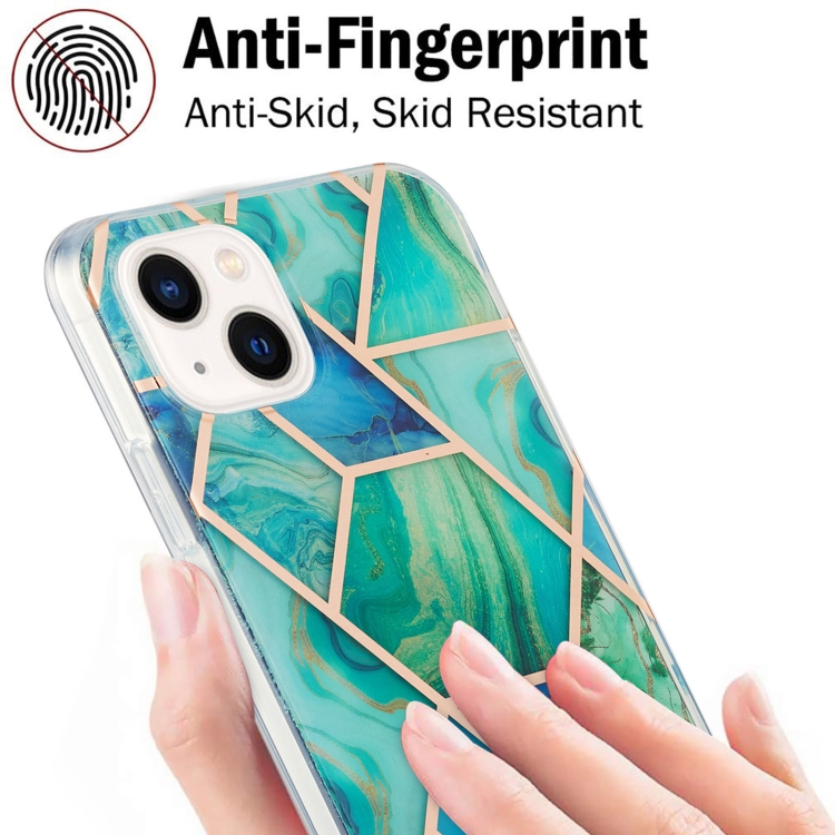 Funda para iPhone 15 Galvanoplastia Empalme Mármol Patrón de Flores Doble Cara Imd TPU a Prueba de Golpes (Verde)