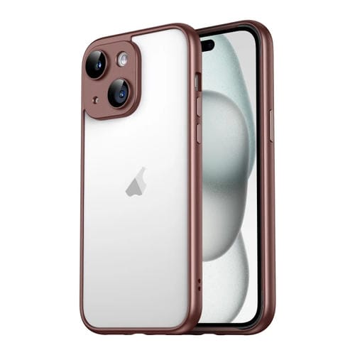 Pour iPhone 15 Macaron PC Phone Pure Edge Frame avec film de verre d'objectif (marron)