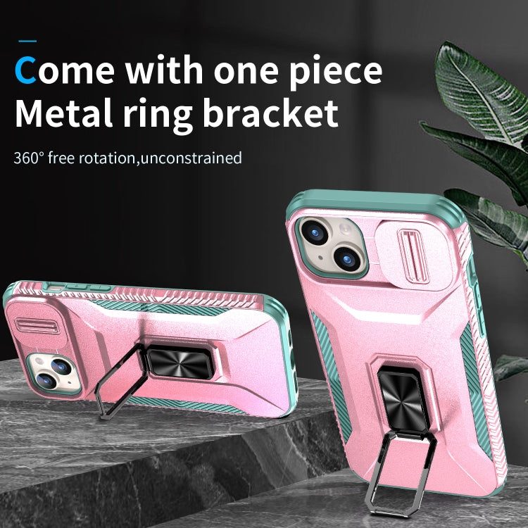 Estuche para Teléfono iPhone 15 Plus con Soporte Deslizante para Levas (Rosa + Gris Verde)
