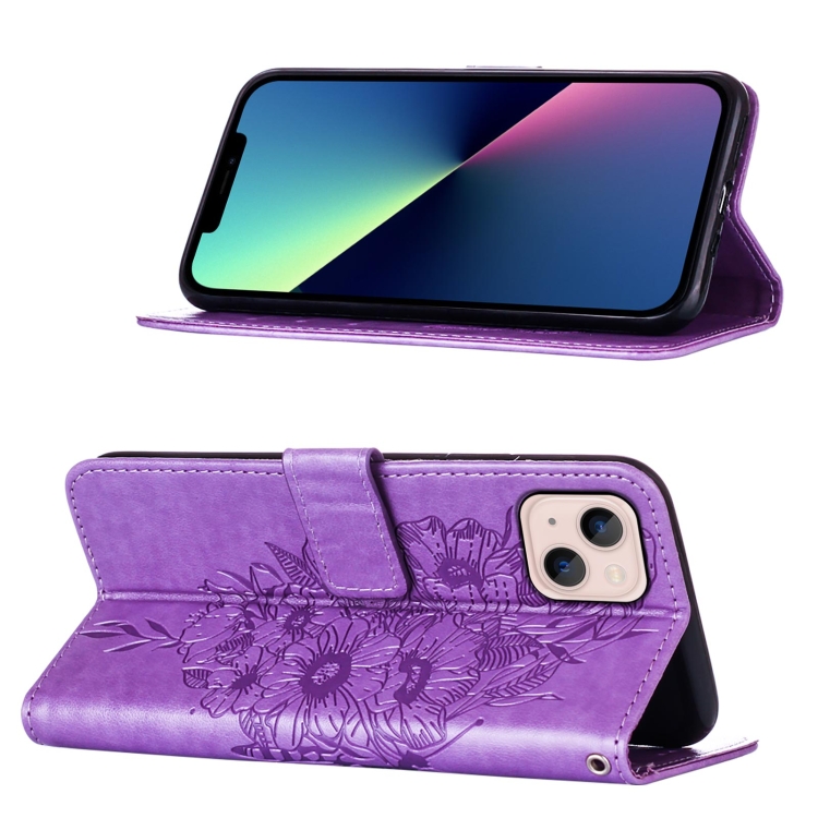 Estuche para Teléfono iPhone 15 Plus Cuero Mariposa en Relieve (Púrpura Claro)
