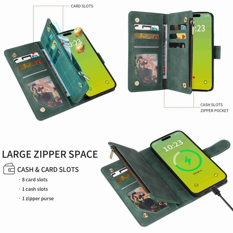Funda Cruzada de Cuero para iPhone 15 Plus con Cremallera y Ranura para Tarjetas (Verde)