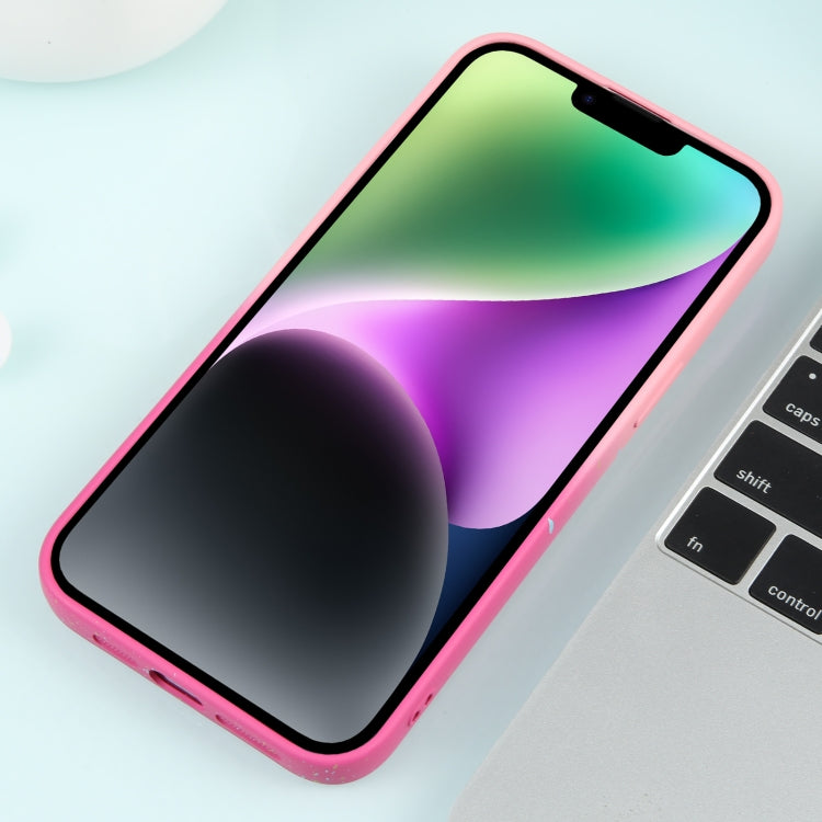 Funda de Teléfono iPhone 15 Plus Silicona Estrellada Degradada con Película de Lente (Rosa Rojo)