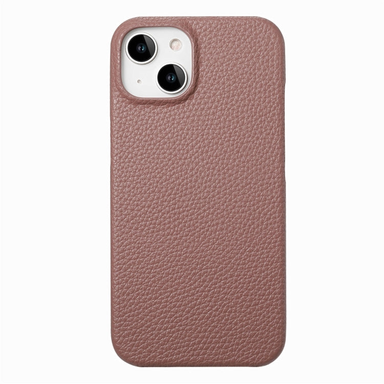 Funda para Teléfono iPhone 15 Plus Parte Trasera Cuero Borde Aceite Litchi (Albaricoque Azufaifo)