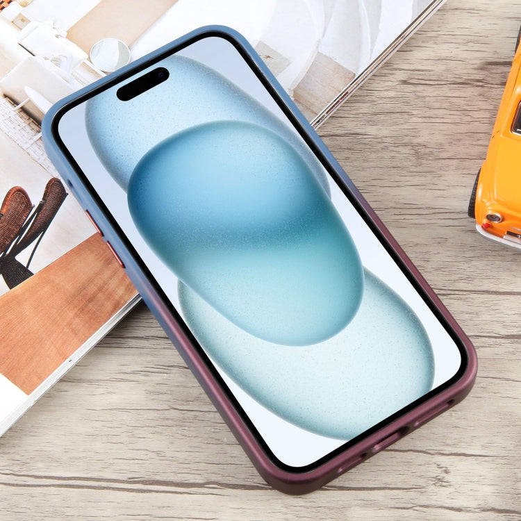 Funda para teléfono iPhone 15 Plus con soporte Magsafe gradiente silicona líquida (Rojo Vino Azul)