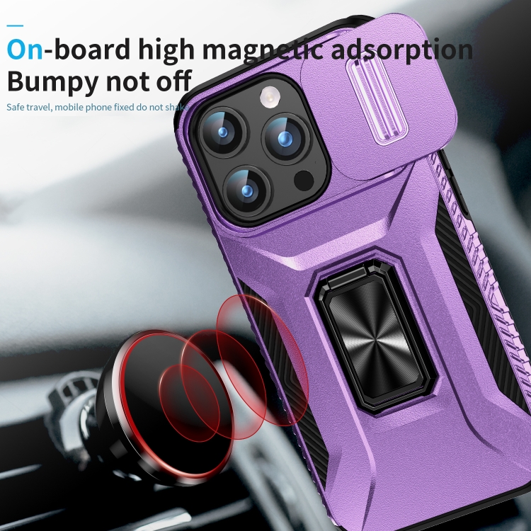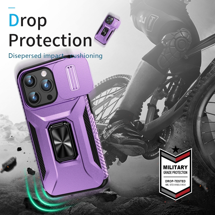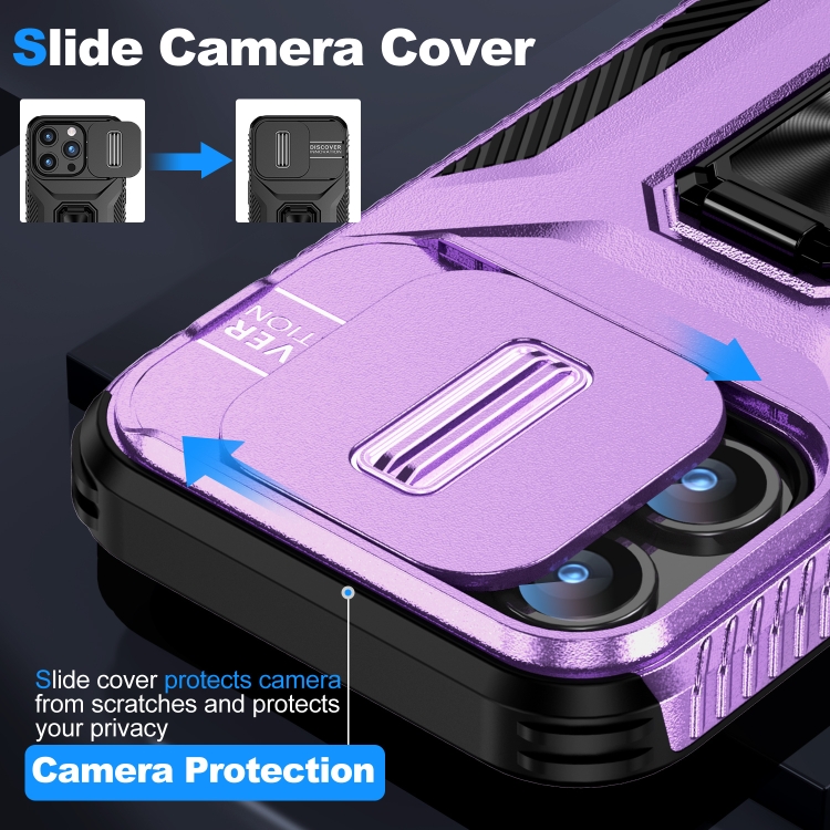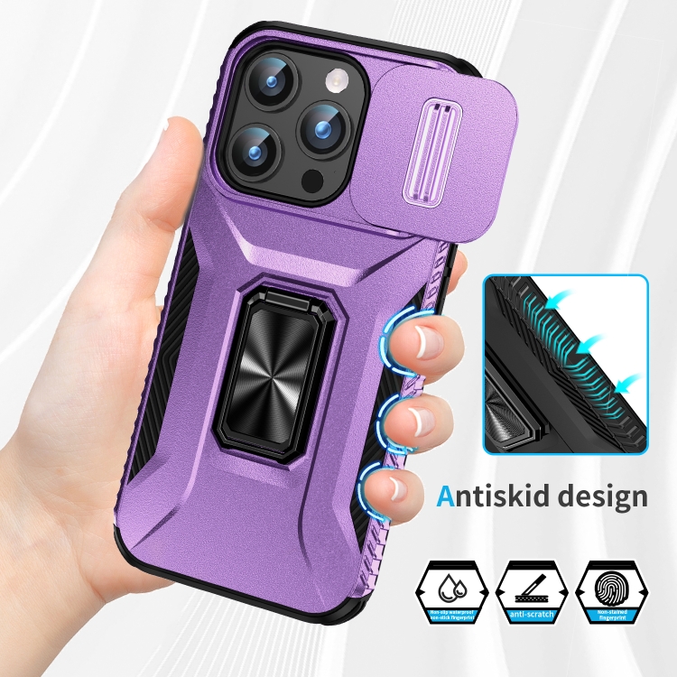 Estuche para Teléfono iPhone 15 Pro con Soporte Deslizante para Levas (Púrpura)