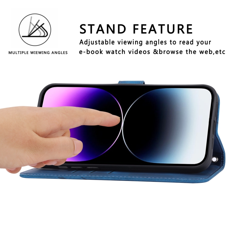 Funda para iPhone 15 Pro Cuero con Línea en Relieve y Cordón (Azul)