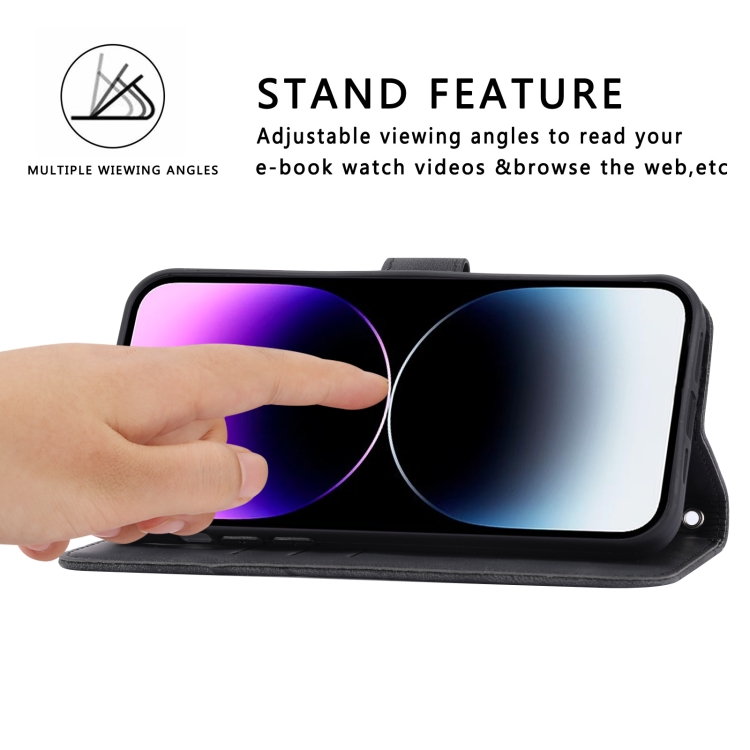Funda para iPhone 15 Pro Cuero Línea En Relieve con Cordón (Negro)