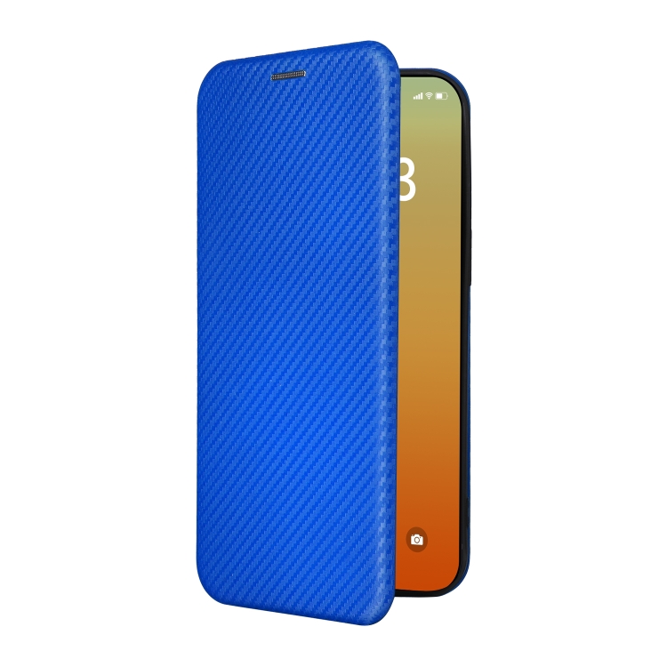 Funda de Teléfono para iPhone 15 Pro con Tapa de Cuero y Textura de Fibra de Carbono (Azul)