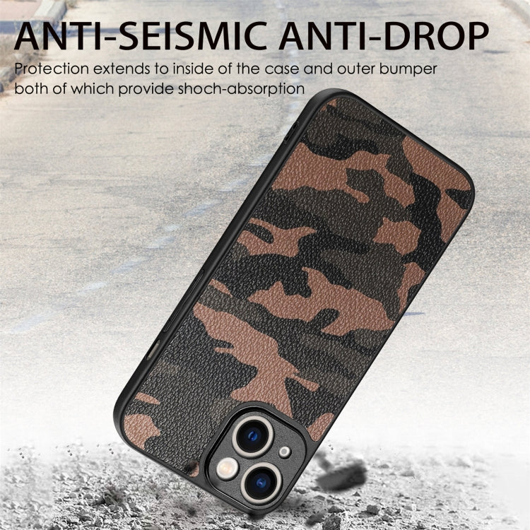 Pour iPhone 15 Pro Étui arrière en cuir camouflage rétro (marron)