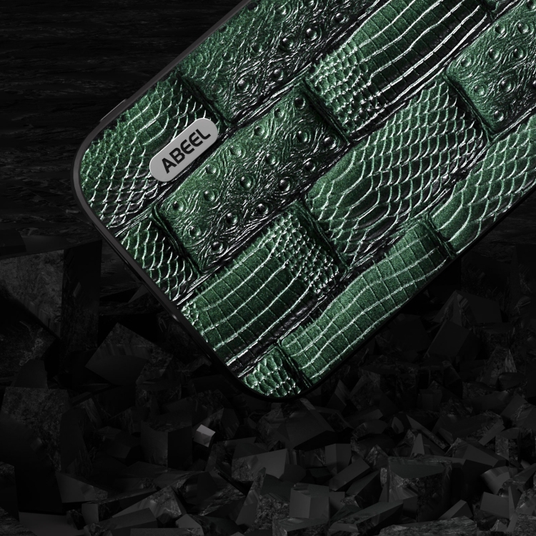 Funda para Teléfono Abeel iPhone 15 Pro Max Patrón Mahjong Cuero Genuino Borde Negro (Verde)