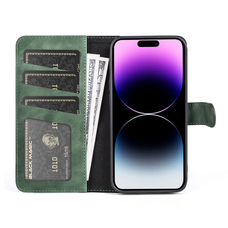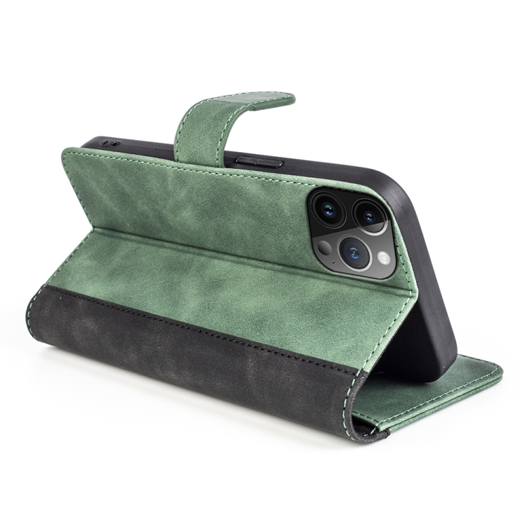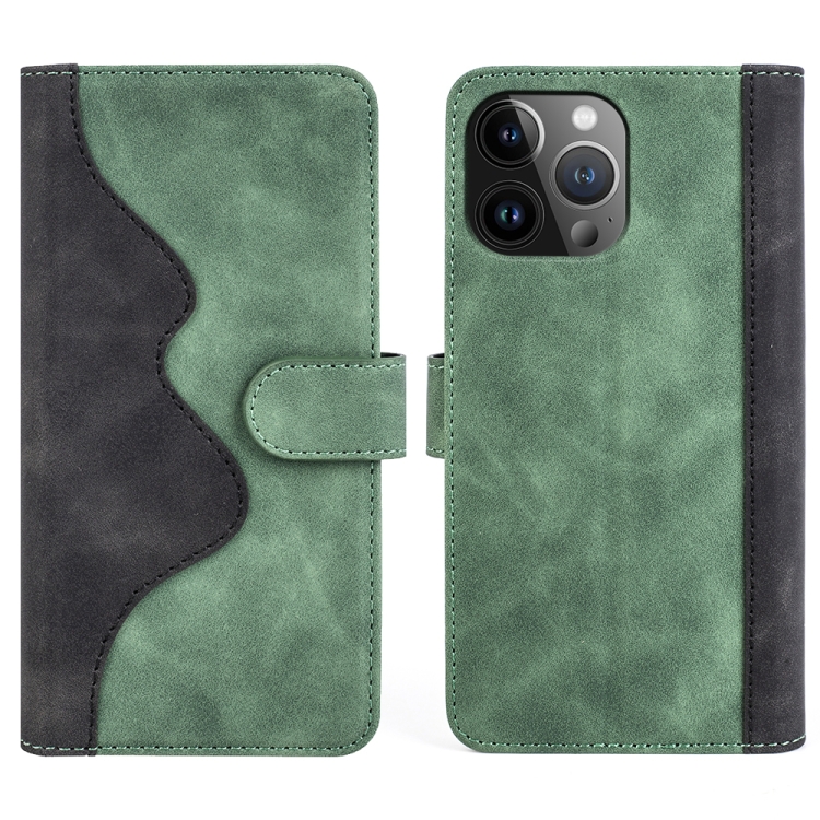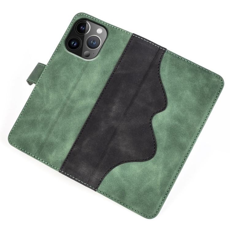 Pour iPhone 15 Pro Max Étui de téléphone en cuir à rabat à coutures horizontales (vert)