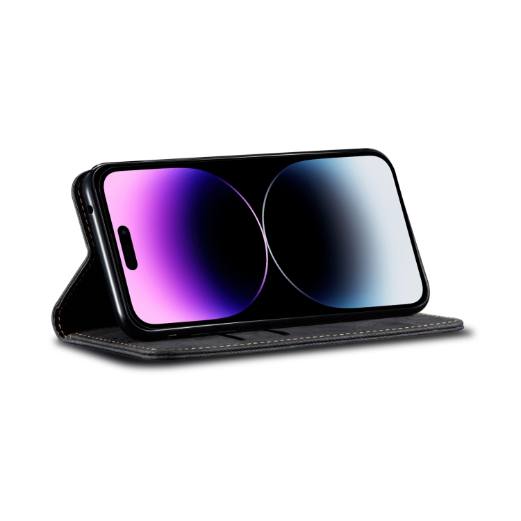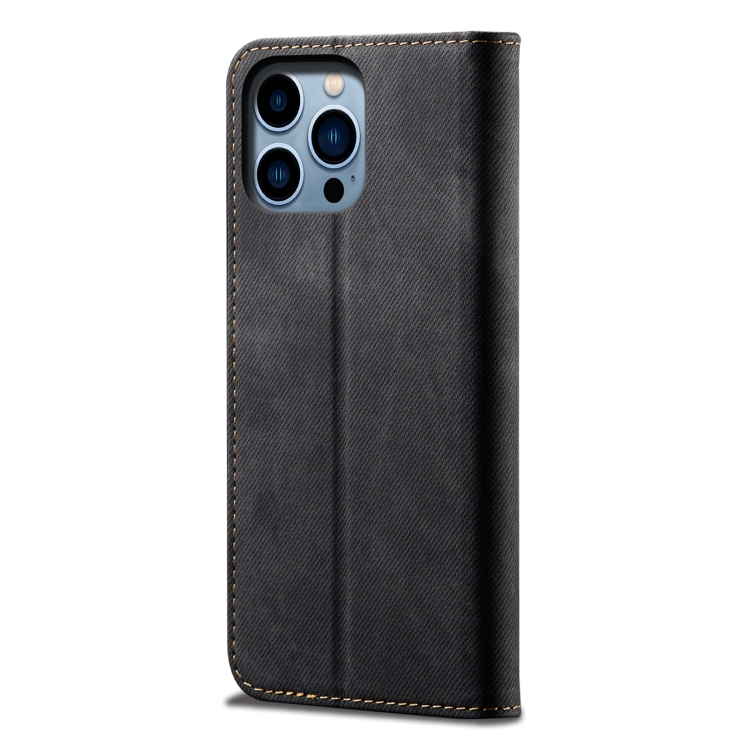 Funda para iPhone 15 Pro Max Denim Texture Cuero con Tapa Horizontal (Negro)