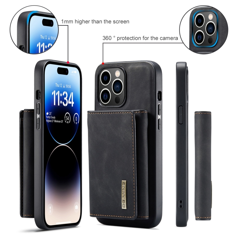 Funda para teléfono Dg.Ming M1 Series iPhone 15 Pro Max con billetera múltiple de 3 pliegues (Negro)