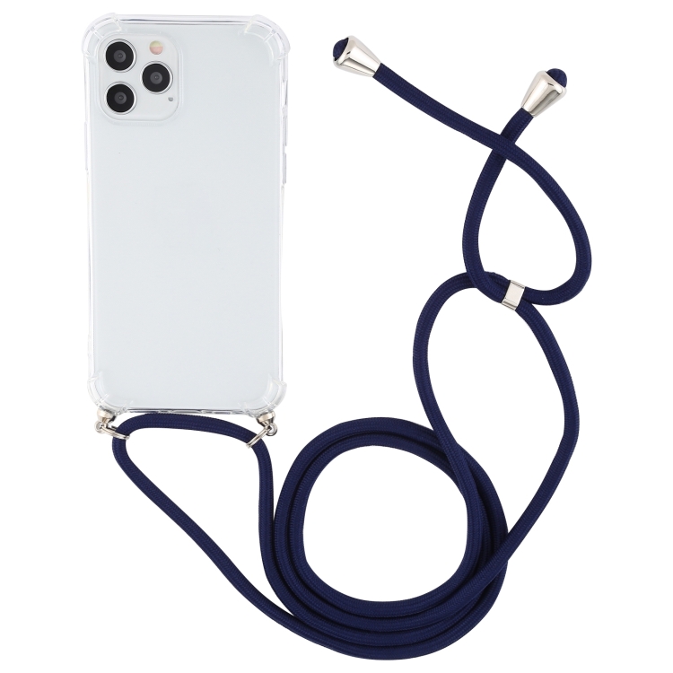 Funda para iPhone 15 Pro Max TPU Transparente a Prueba de Golpes Cuatro Esquinas con Cordón (Azul Oscuro)