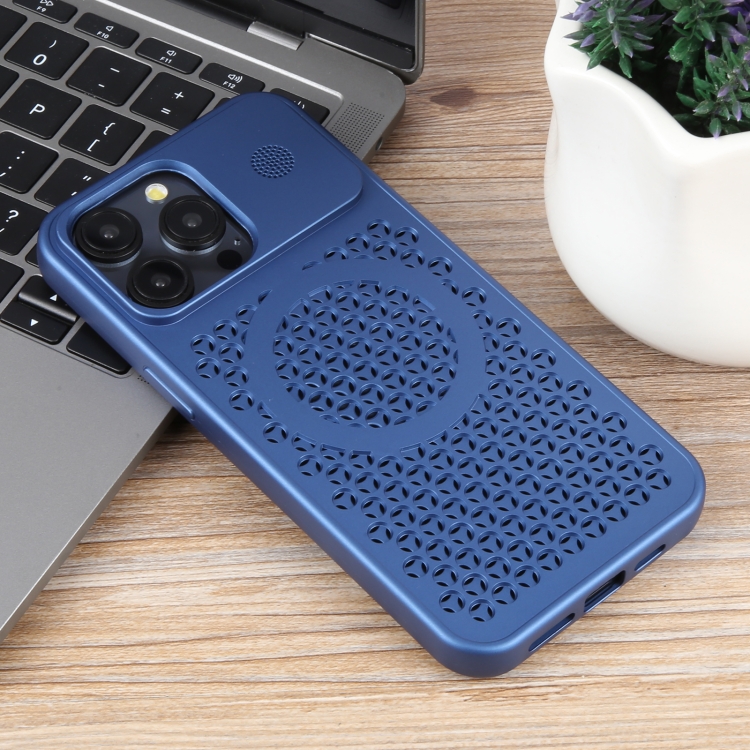 Funda para Teléfono iPhone 15 Pro Max Pure Color Honeycomb Aromatherapy Magsafe (Azul)
