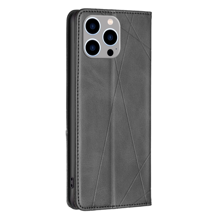 Caja de Teléfono para iPhone 15 Pro Max Rhombus Texture Cuero Magnético (Negro)