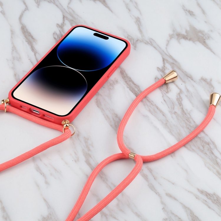 Funda para Teléfono iPhone 15 Pro Max Wheat Straw TPU a Prueba de Golpes con Cordón para El Cuello (Rojo)