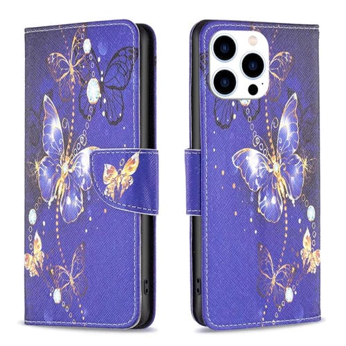 For iPhone 15 Pro Colored Drawing Pattern Flip Leather Phone Case Cover (Purple Butterfly)