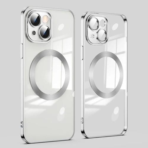Pour iPhone 15 MagSafe Lens Protector Étui de téléphone galvanisé (argent)