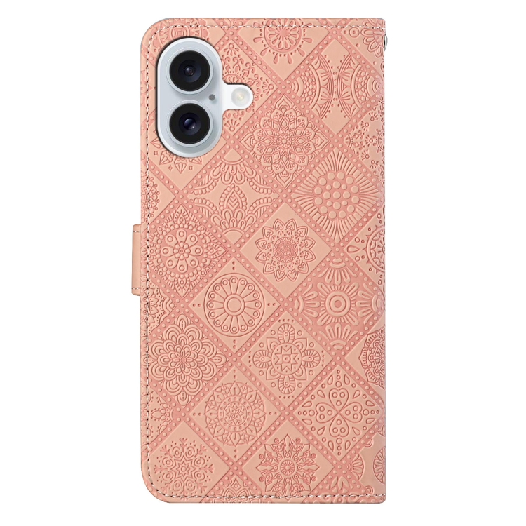 Funda para Teléfono iPhone 16 Plus Cuero Patrón en Relieve Estilo Étnico (Rosa)