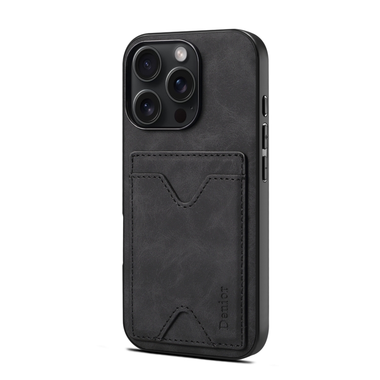 Funda Trasera Denior D06 para iPhone 16 Pro con ranura para tarjeta y soporte (Negro)