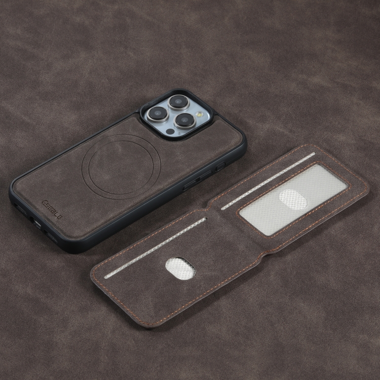 Funda para iPhone 16 Pro Eseble E2 Cuero con Ranuras para Tarjetas Magsafe Rfid (Café)