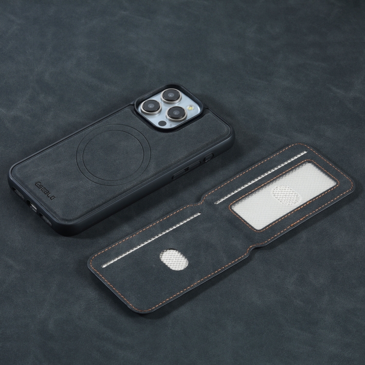 Funda de Cuero Eseble E2 para iPhone 16 Pro con Ranuras para Tarjetas Magsafe Rfid (Negro)