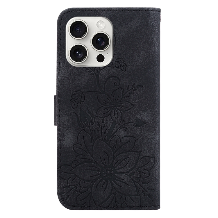 Funda para Teléfono iPhone 16 Pro Lily Cuero En Relieve (Negro)
