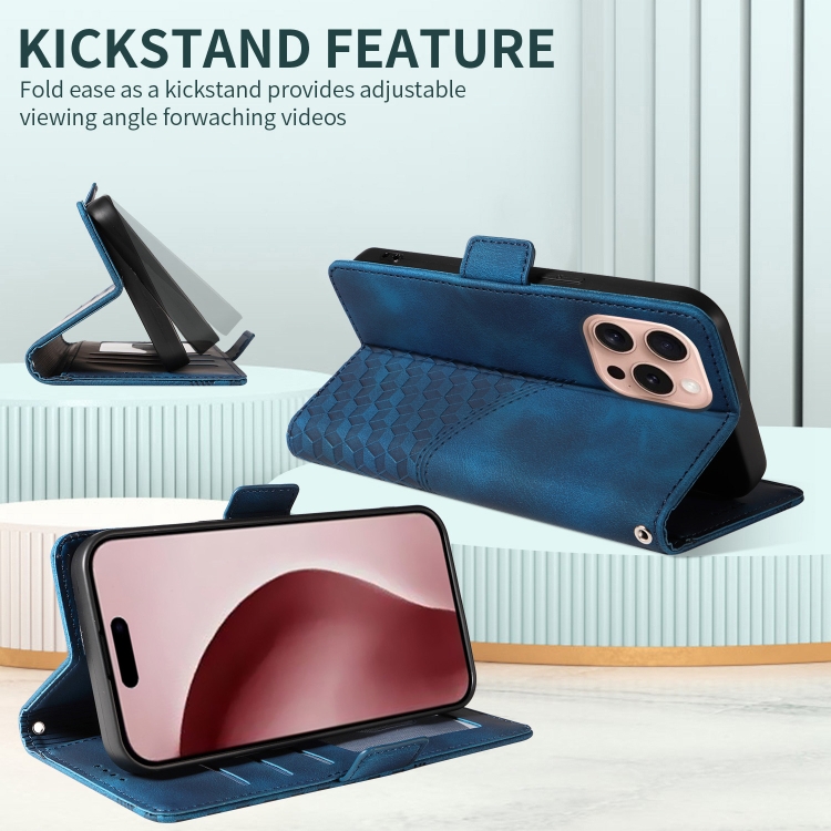 Funda para teléfono iPhone 16 Pro Max Cuero Estrellado con Rombos en Relieve (Azul)