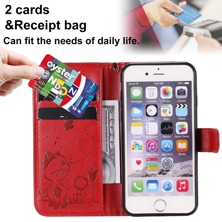 Funda para iPhone 6 Cat Bee Patrón de Relieve a Prueba de Golpes Cuero con Tapa Horizontal Soporte Ranuras para Tarjetas Billetera