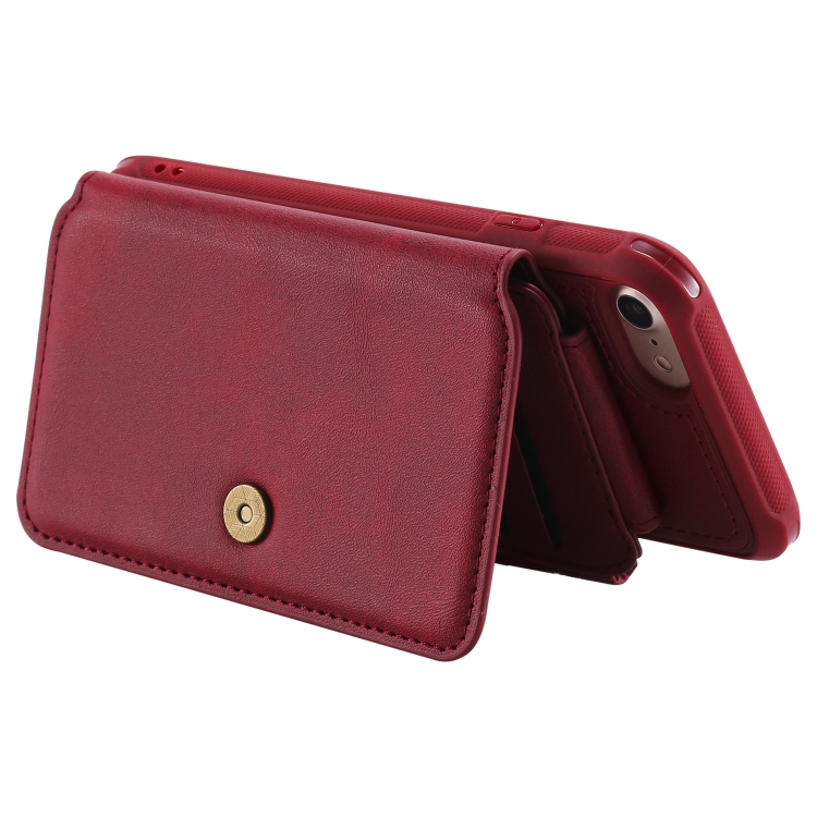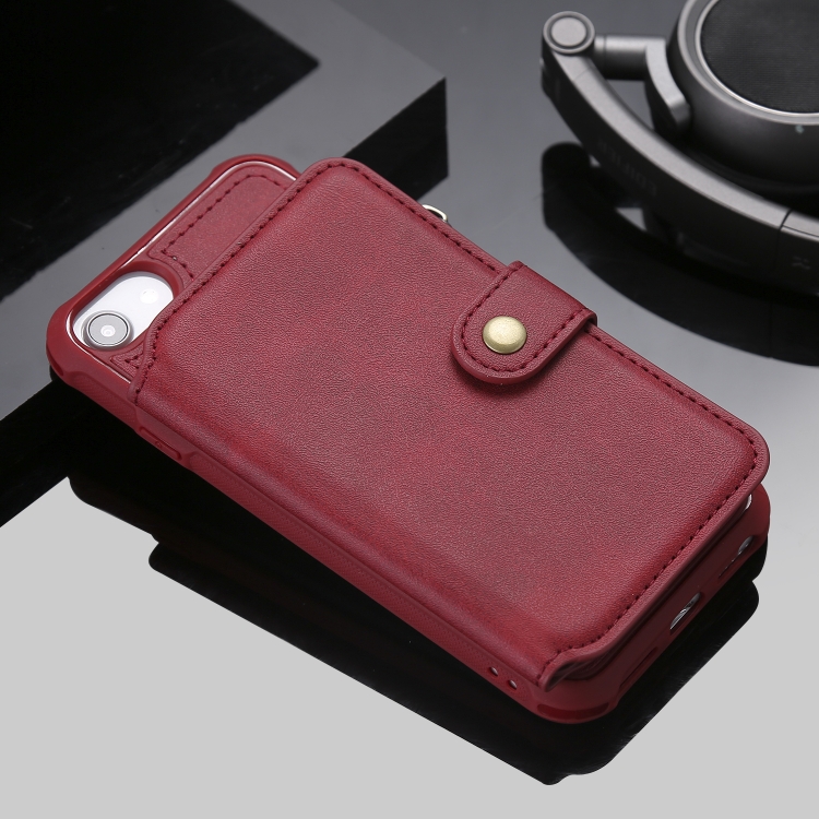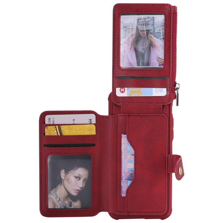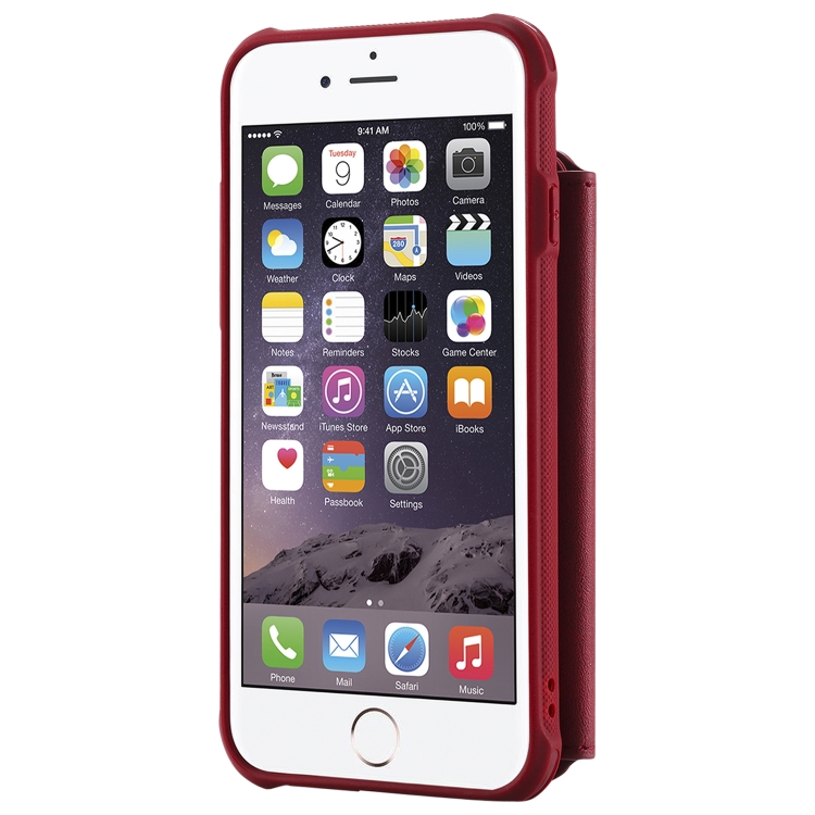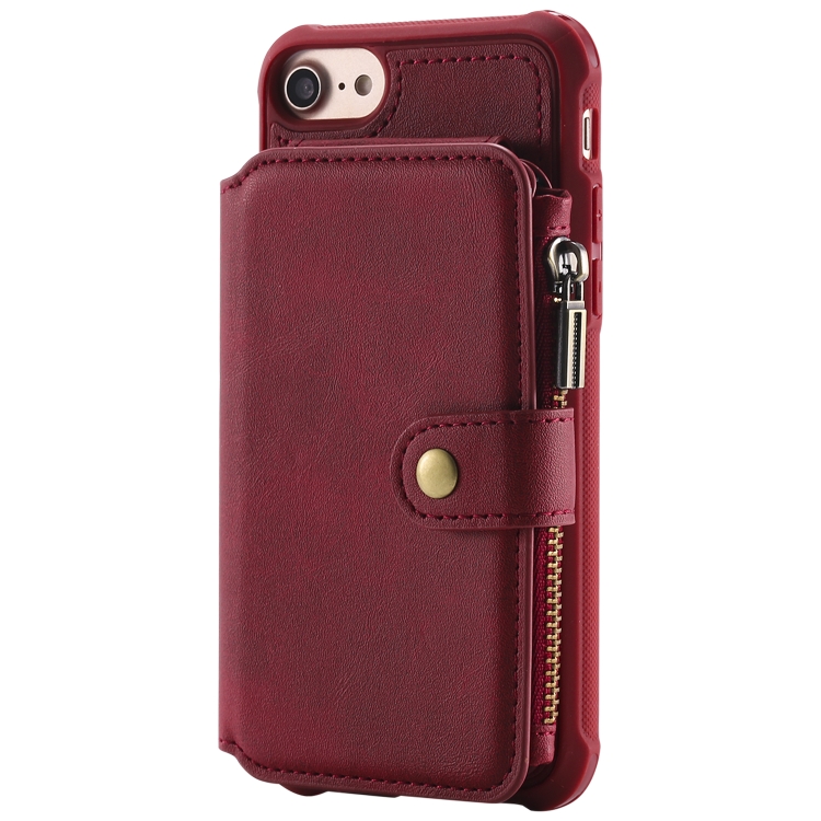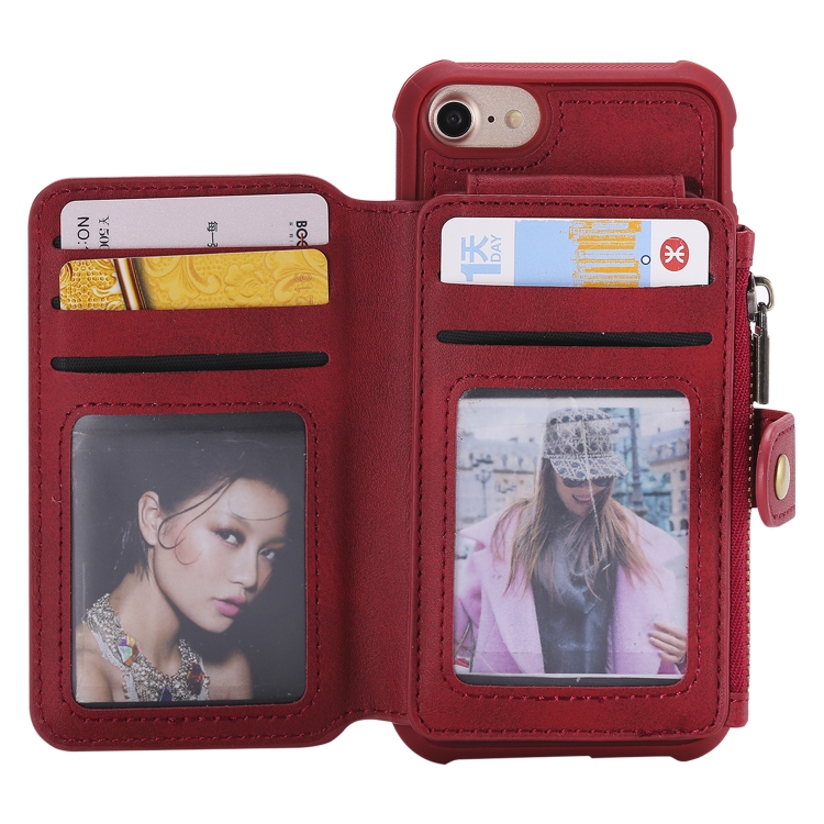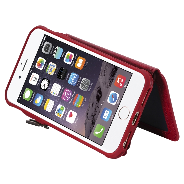 Estuche protector para iPhone 6 con cremallera ranuras para tarjetas soporte fotos función billetera (Rojo)