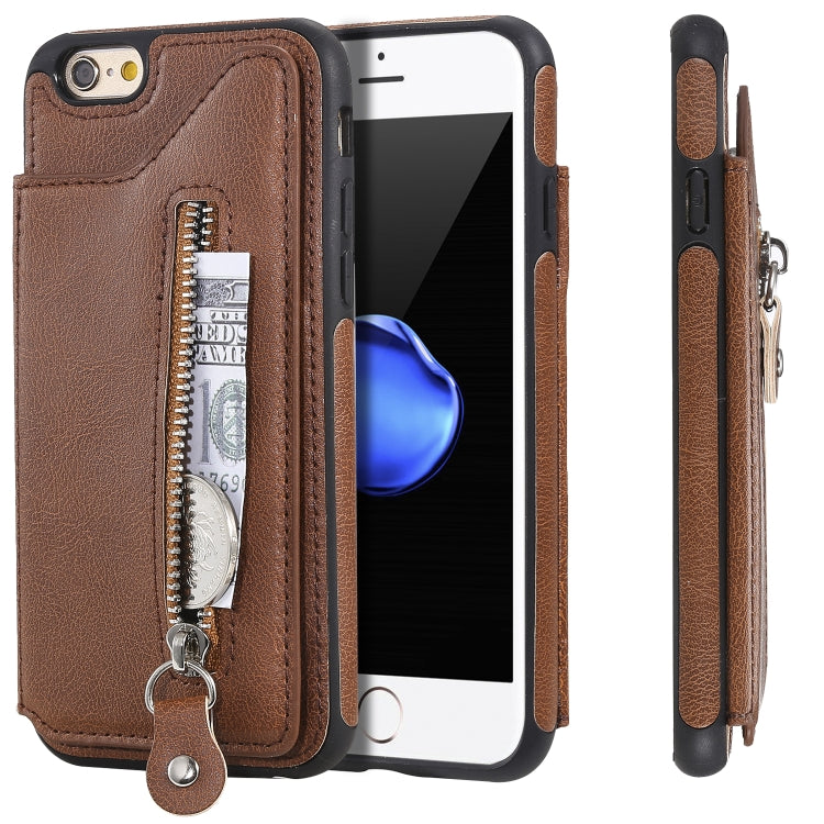 Funda Protectora para iPhone 6 con Cremallera de Doble Hebilla a Prueba de Golpes (Marrón)