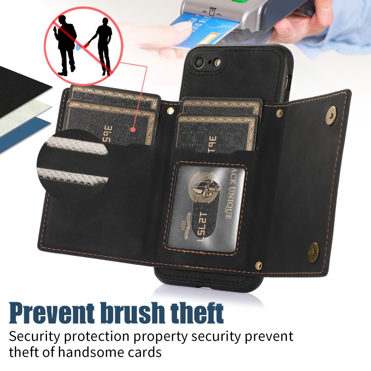 Estuche de Teléfono Cuero Rfid Tres Pliegues para iPhone 6 Plus con Cordón (Negro)