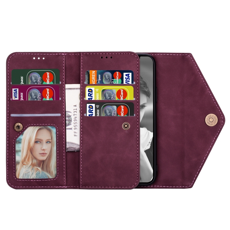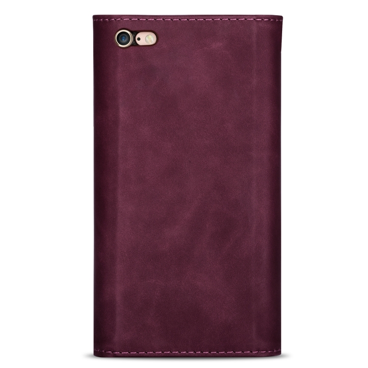 Funda para iPhone 6 Plus Skin Feel Zipper de Cuero con Tapa Horizontal, Soporte, Ranuras para Tarjetas, Marco de Fotos y Cordón (Rojo Vino)