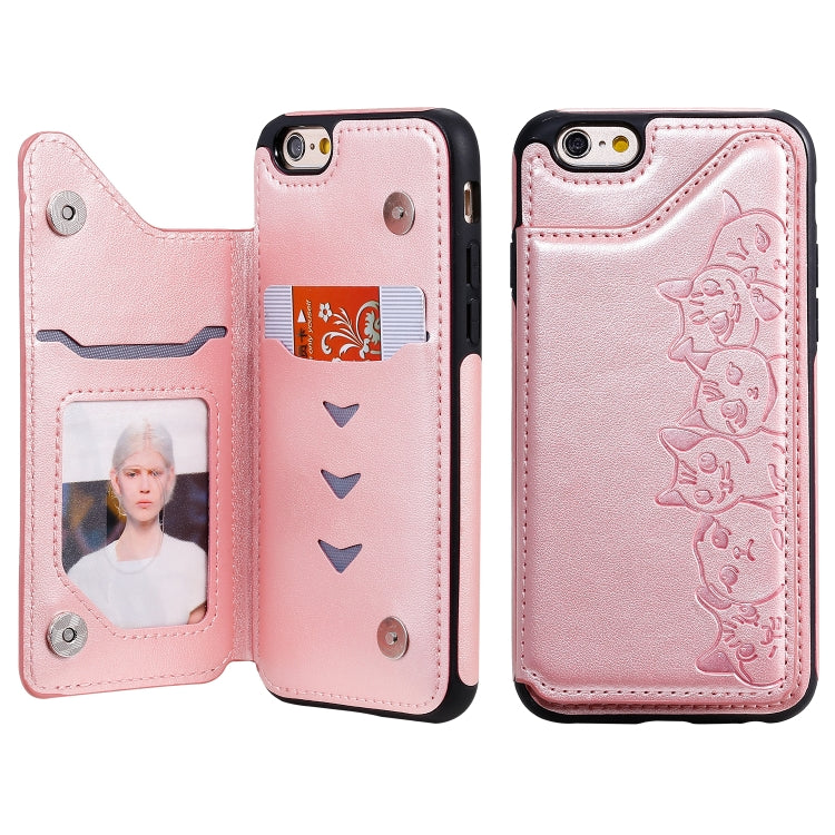 Funda Protectora iPhone 6 Six Cats con Patrón En Relieve, Soporte, Ranuras para Tarjetas y Marco de Fotos (Oro Rosa)