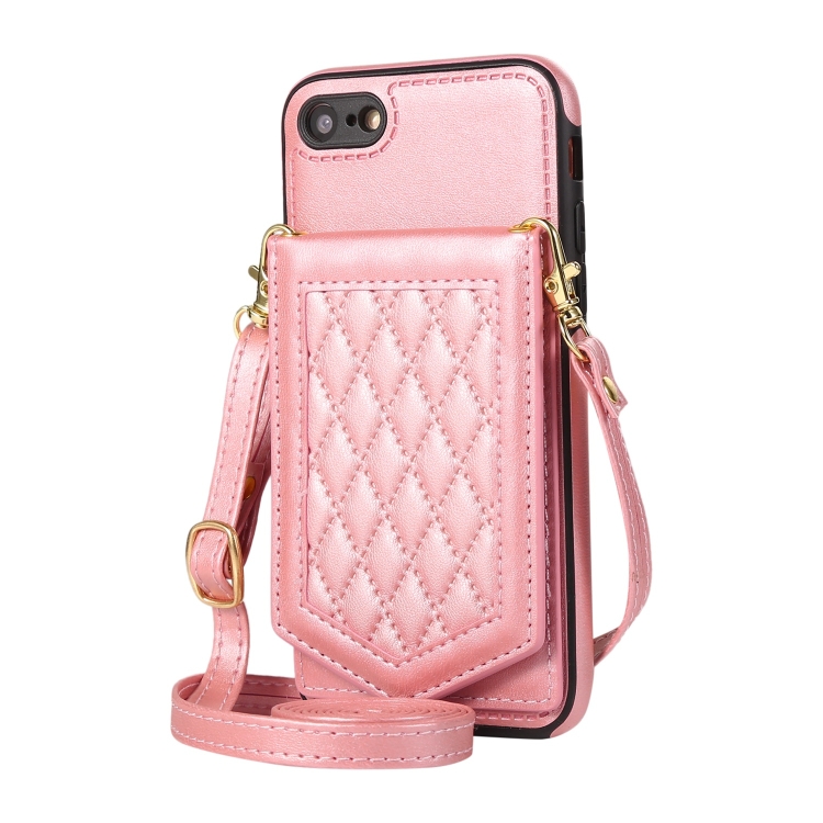 Funda para iPhone 6S / 6 Rhombic Texture Rfid con Cordón y Espejo (Oro Rosa)