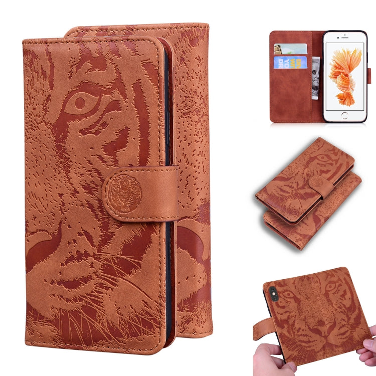 Funda de Cuero iPhone 6S Plus 6 Plus Tiger Embossing con Tapa Horizontal Soporte Ranuras Tarjetas Billetera (Marrón)