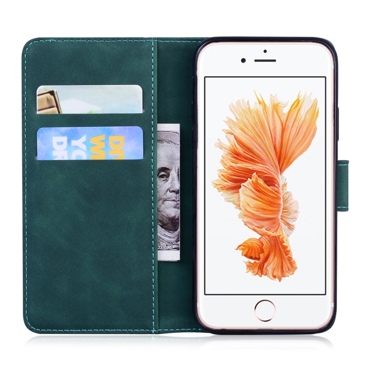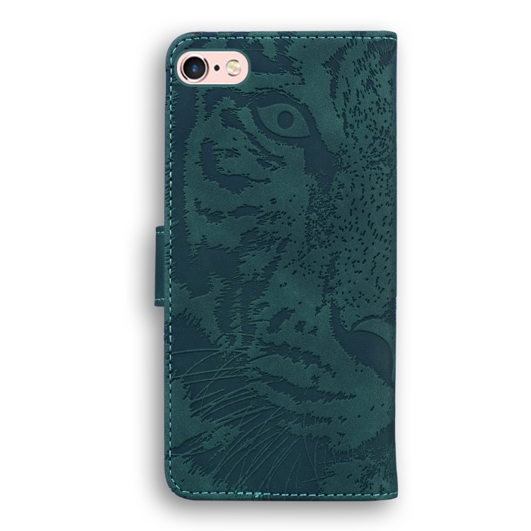Funda de Cuero para iPhone 6S Plus 6 Plus Tiger Embossing con Tapa Horizontal Soporte Ranuras Tarjetas Billetera (Verde)