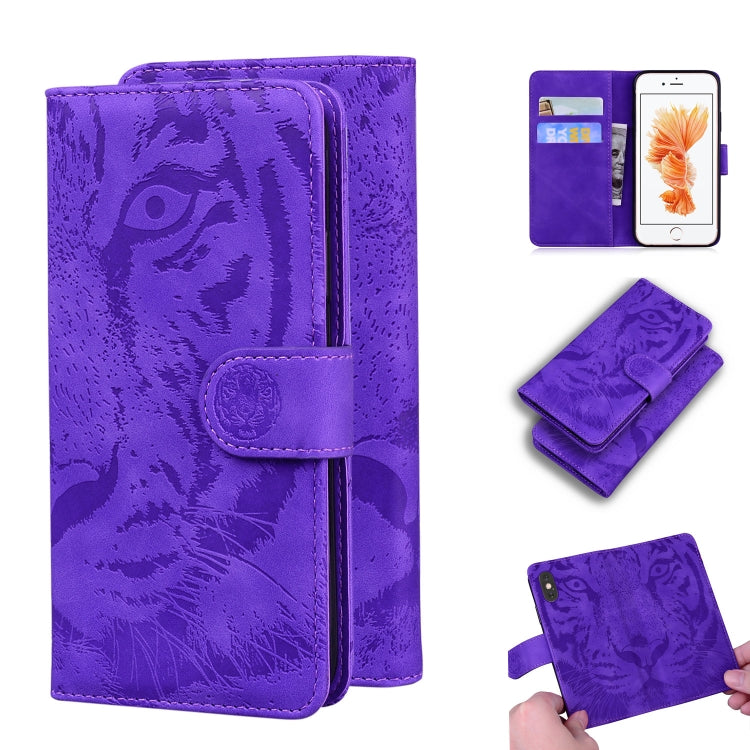 Funda de Cuero para iPhone 6S Plus y 6 Plus Tiger Embossing con Tapa Horizontal Soporte Ranuras y Billetera (Morado)