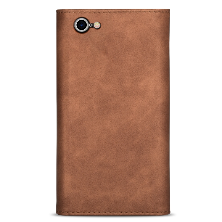 Funda para iPhone 7/8/SE (2020) Skin Feel Zipper de Cuero con Tapa Horizontal Soporte Ranuras Tarjetas Marco Fotos Cordón (Marrón)