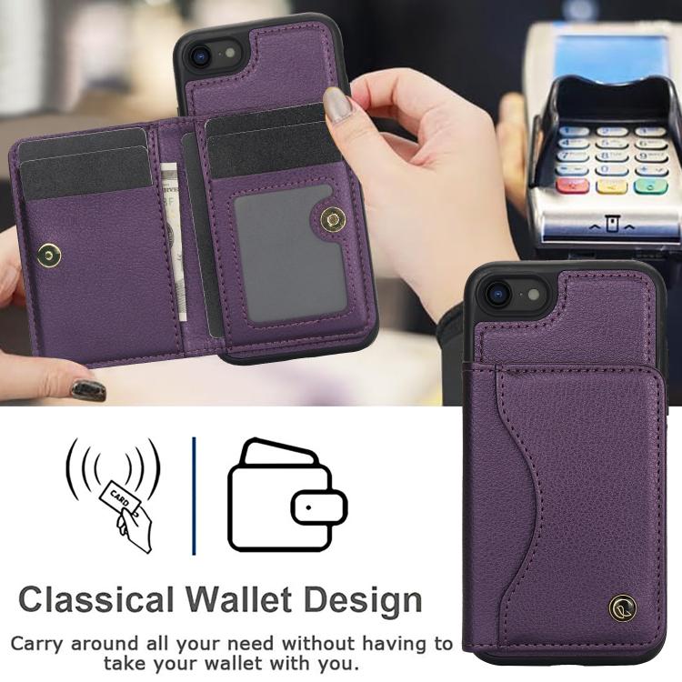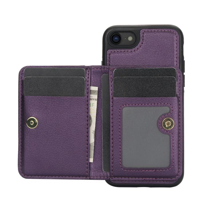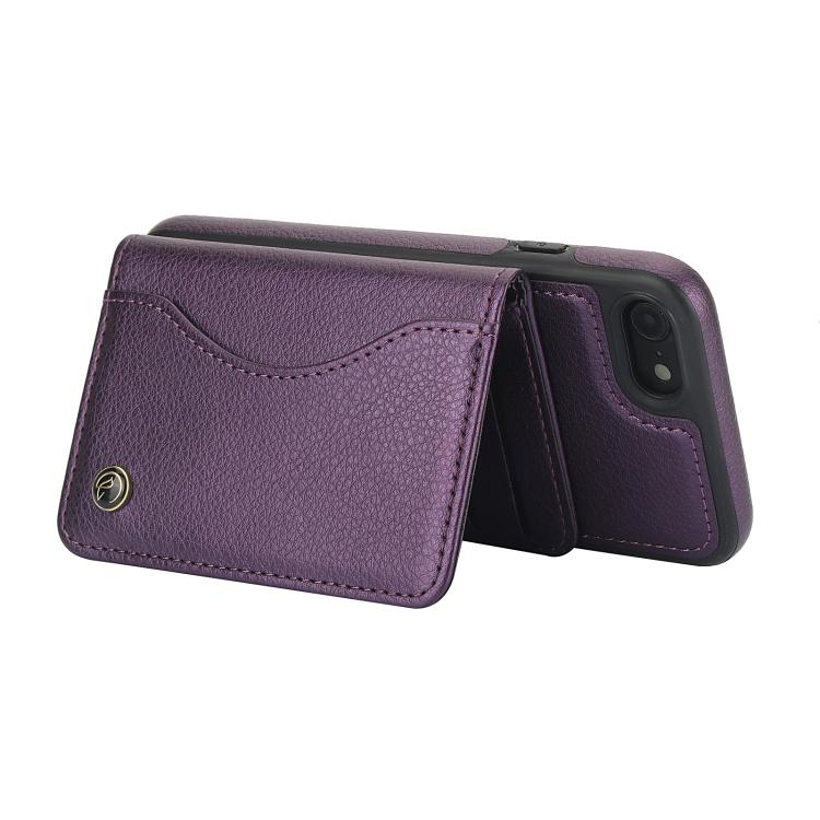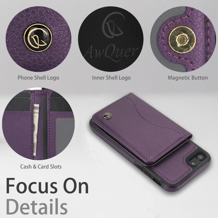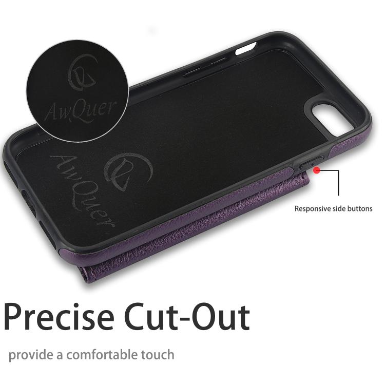 Funda de Cuero Awquer para iPhone 7/8/Se 2022 con Tapa Horizontal, Tarjetas y Soporte (Morado Oscuro)