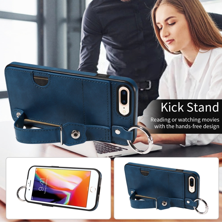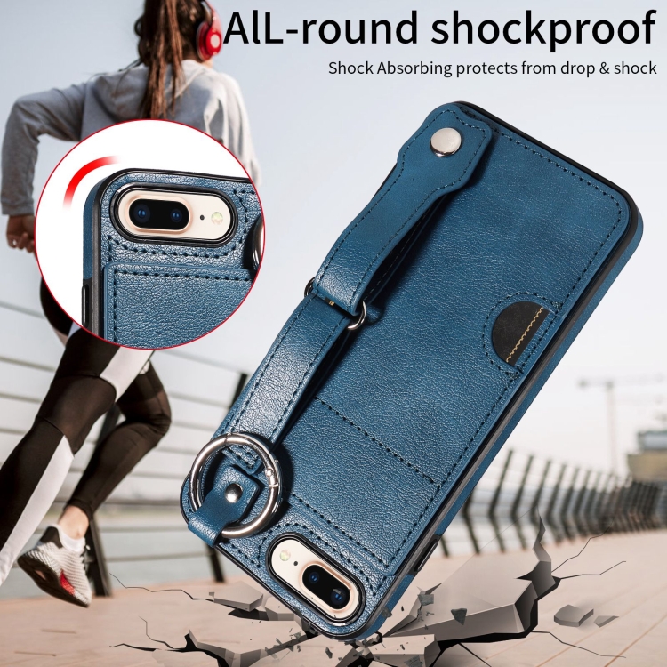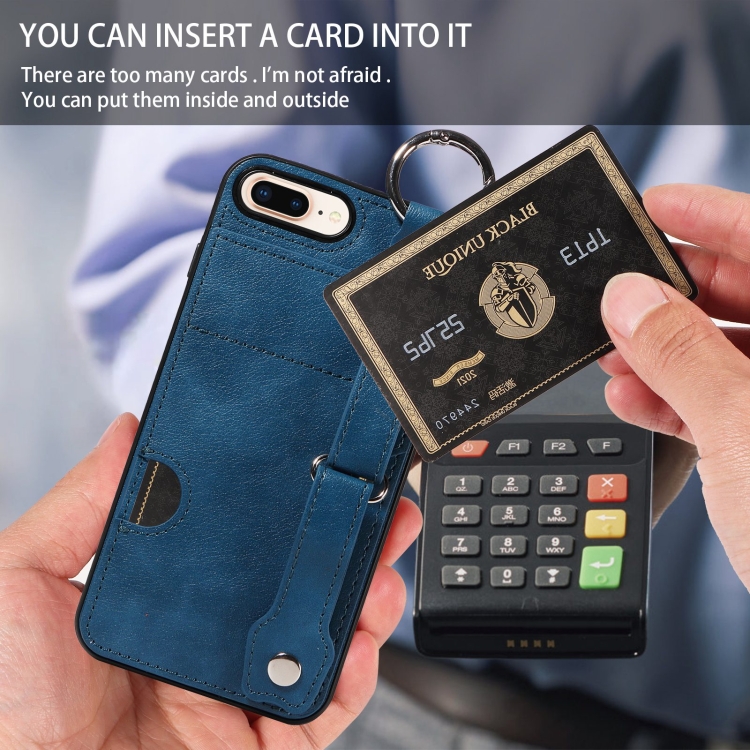 Funda para Teléfono iPhone 7 Plus/8 Plus con Anillo y Ranura para Tarjeta en la Muñeca (Azul)