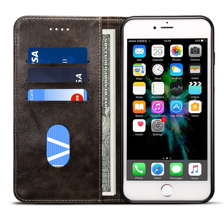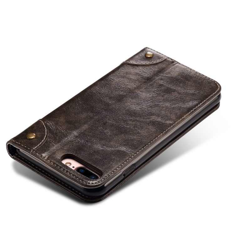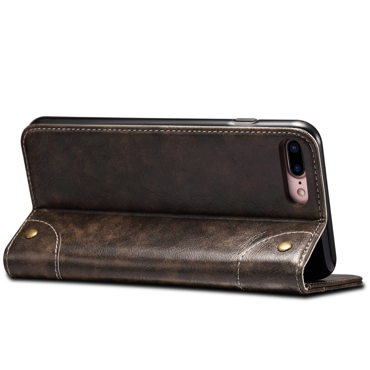 Funda de Cuero Barroco para iPhone 8 Plus y 7 Plus con Tapa Horizontal, Soporte, Ranuras para Tarjetas y Billetera (Negro)