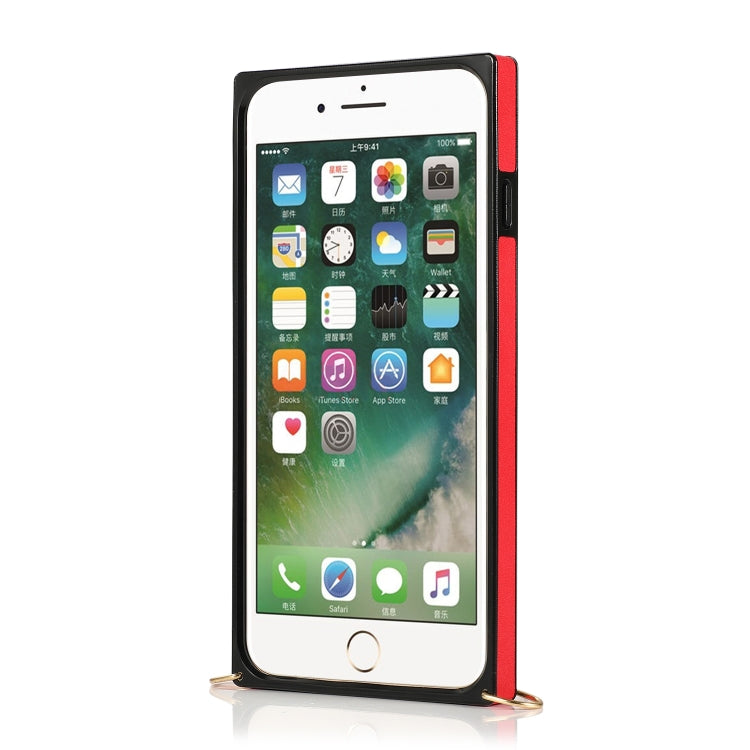 Funda para iPhone 8 Plus y 7 Plus PU con Correa de Muñeca y TPU a Prueba de Golpes con Soporte y Ranura para Tarjeta (Rojo)